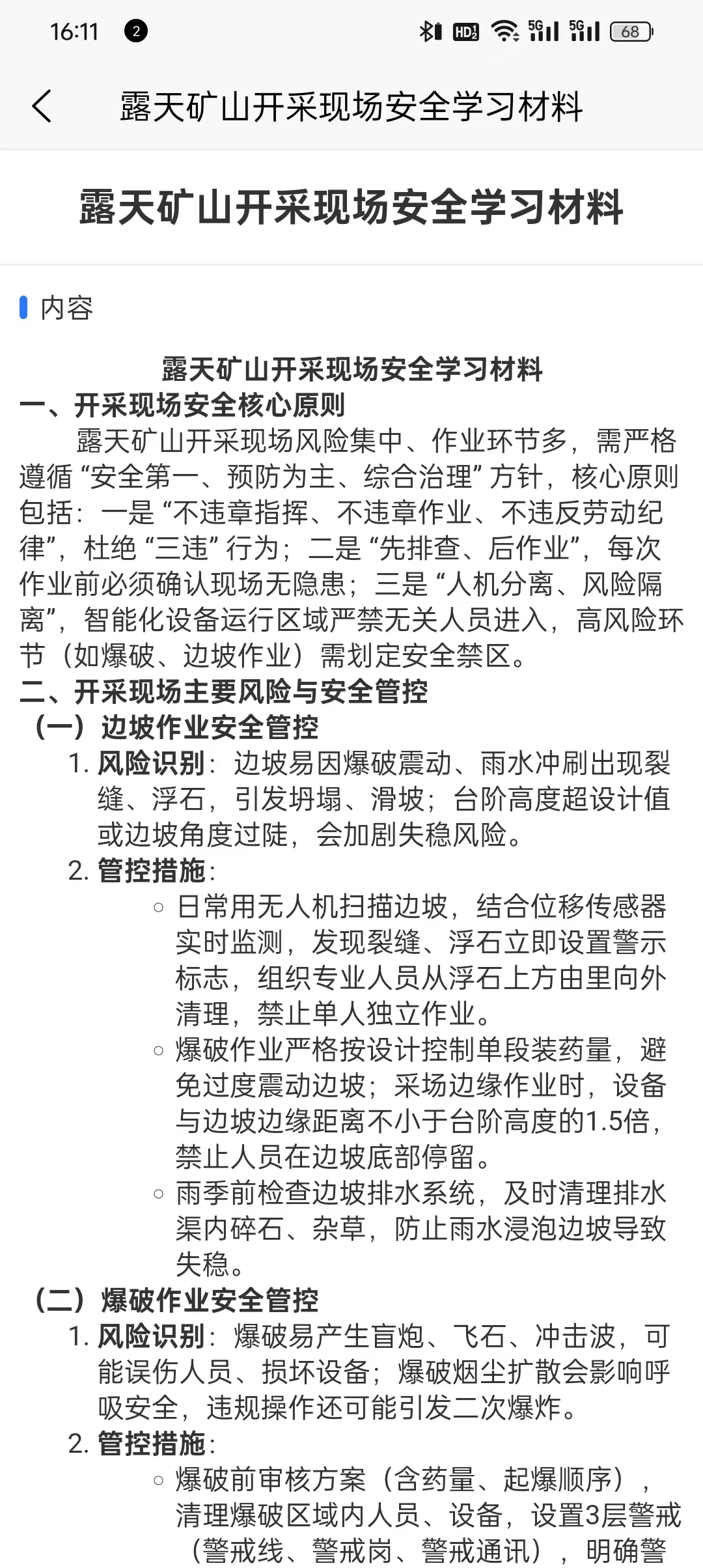 矿山人员可以通过首页直接进入或者通过学习中心跳转进入。可以直接搜索相应的学习材料,直接点击进入进行学习,涵盖图片、文档、视频等多种形式的学习材料都可以直接在此页面学习。