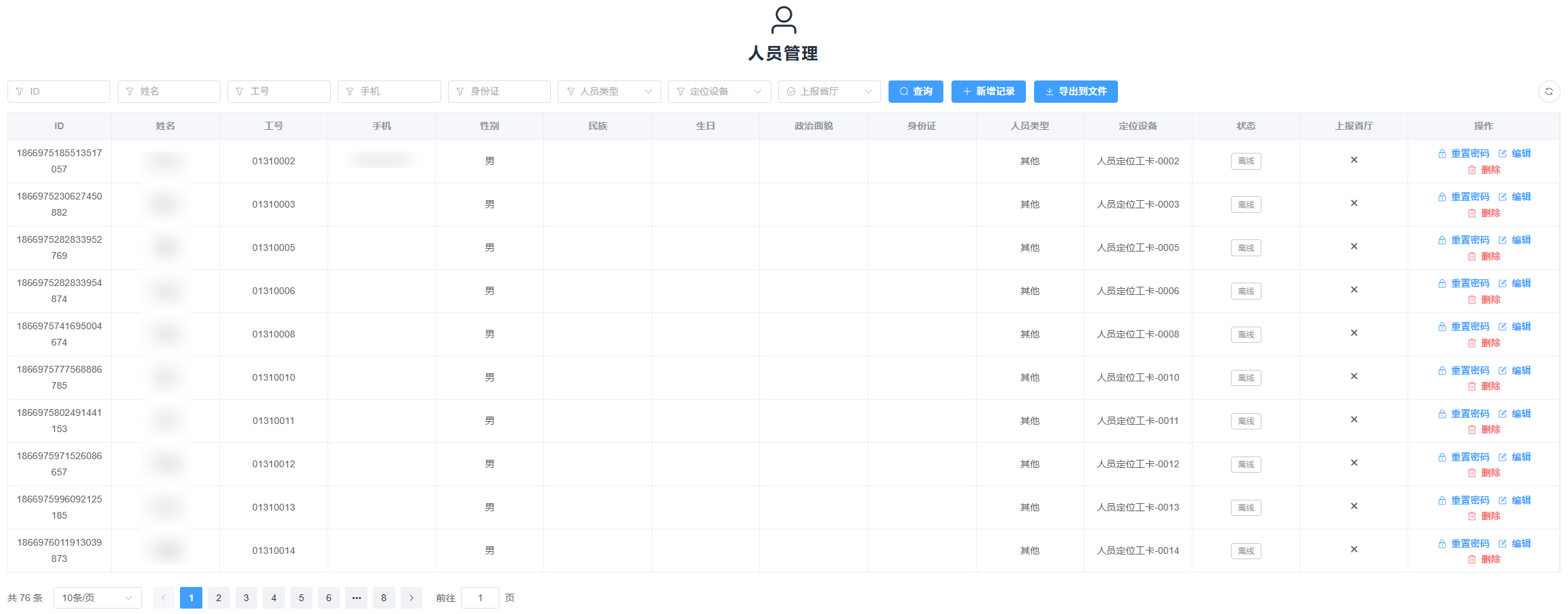 管理员后台登录,在【人员管理】页面,点击对应人员的‘重置密码’,在弹出的页面中输入 App 登录密码。App 用户即可以用自己的电话号码和这个密码进行登录。