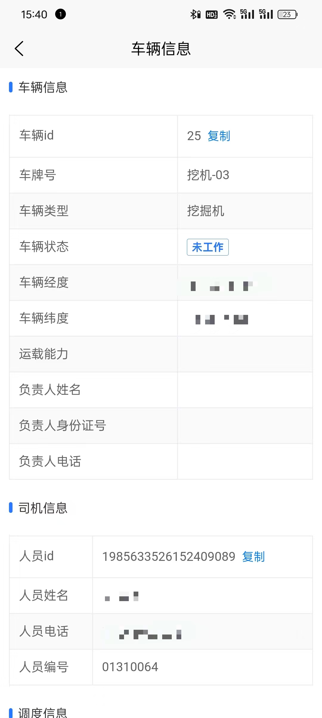 在下方也会实时展示调度状态、车辆和绑定的司机的基础信息、里程实时数据。